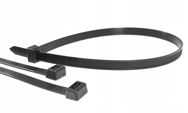Gęste ząbki na całej długości pozwalają na precyzyjne dopasowanie pętli opaski do rozmiaru wiązki. Opaski możemy zaciskać ręcznie lub za pomocą specjalnego przyrządu.