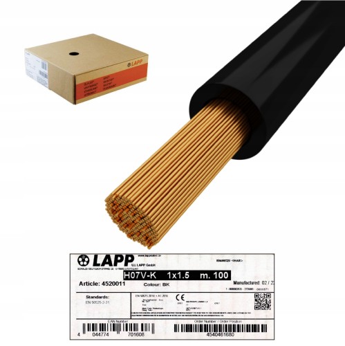 Kabel przewód LGY H07V-K 1,5mm czarny 100m LAPP KABEL