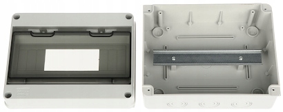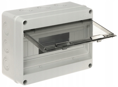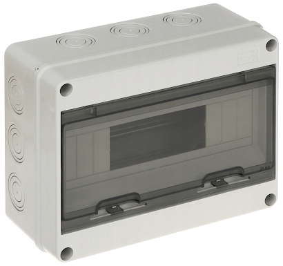 Liczba montowanych modułów: 6 ... 12 x 1 rząd ; Przezroczyste drzwi; Klasa szczelności: IP65 ; Wymiary: 253 x 196 x 110 mm ;